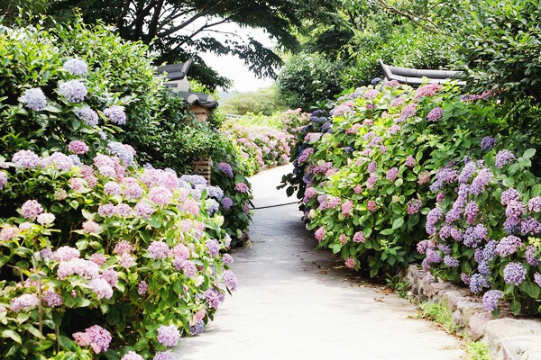 푸른 바다와 함께 만개한 수국을 감상할 수 있는 최고의 시즌이에요.