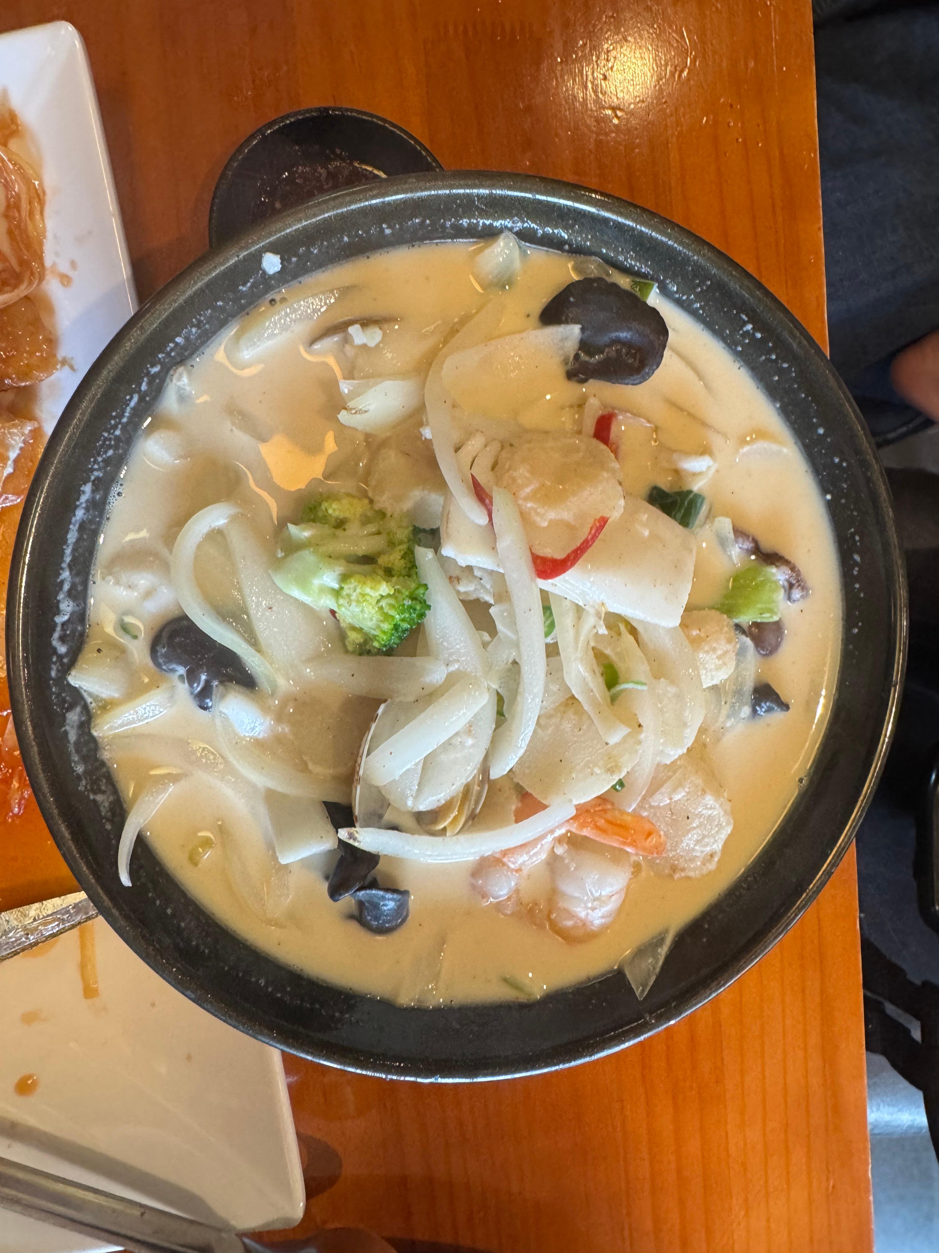 그리고 마지막으로 크림 짬뽕이 나왔어요 진한 크림 소스는 해물의 풍미를 한껏 끌어올려 주었고, 매콤한 맛이 더해져 입맛을 자극했어요 . 아이와 함께 나누어 먹으며 "이게 정말 맛있다!"는 감탄을 연발했습니다. 크림 짬뽕을 한 입 맛보는 순간, 바다의 신선함과 크림의 부드러움이 함께 어우러져 깊은 만족감을 주었어요