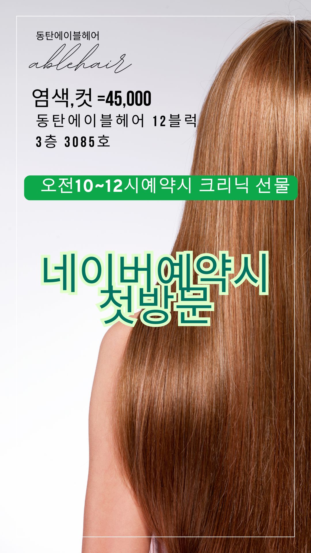 동탄에이블헤어를 방문하기 전에 미리 알고 가면 좋은 정보들을 정리했습니다. 아래 표를 참고하여 더욱 편리하게 예약하고 방문해 보세요.